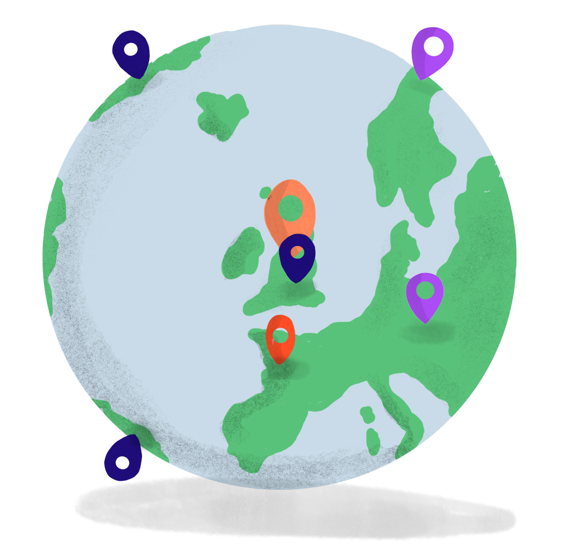 1 in 10 of the team at Nexer Digital grew up outside the UK (Illustration by Francesca Pearson)